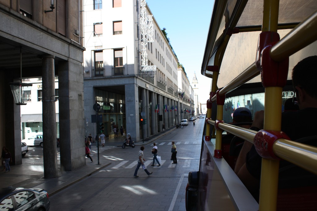 The Porticos: From the train station all along the Via Roma to the main square there are covered porticos (archways) so that you never need to be out in the hot sun. When I took the bus tour I learned that these porticos were created to keep the royals and the noblemen out of the rain and that there are ten miles of them around the city. (I may have the numbers wrong because this bus tour wasn’t as exciting as the one in Reims and I dropped off a few times.)