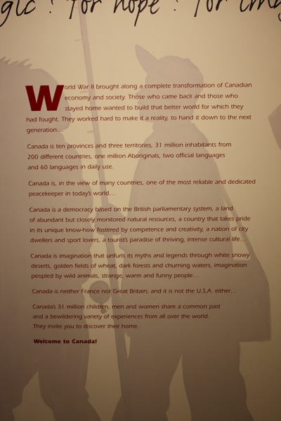 (Poster in the museum….love the bit “Canada is neither France nor Great Britain; and it’s not the U.S.A. either…”)