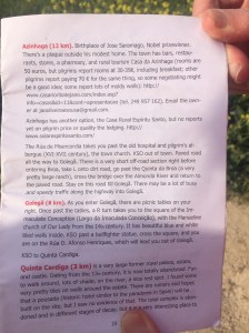 Remember I said there were four experienced walkers along with two newbies? The thing I didn’t explain was that the experienced Camino walkers are very organized. They don’t think they are – they joke about it all the time – but I think they are. For one thing they have books and printed blogs to guide us…. this might seem like an obvious addition but remember they are carrying those books for ever kilometer they walk.