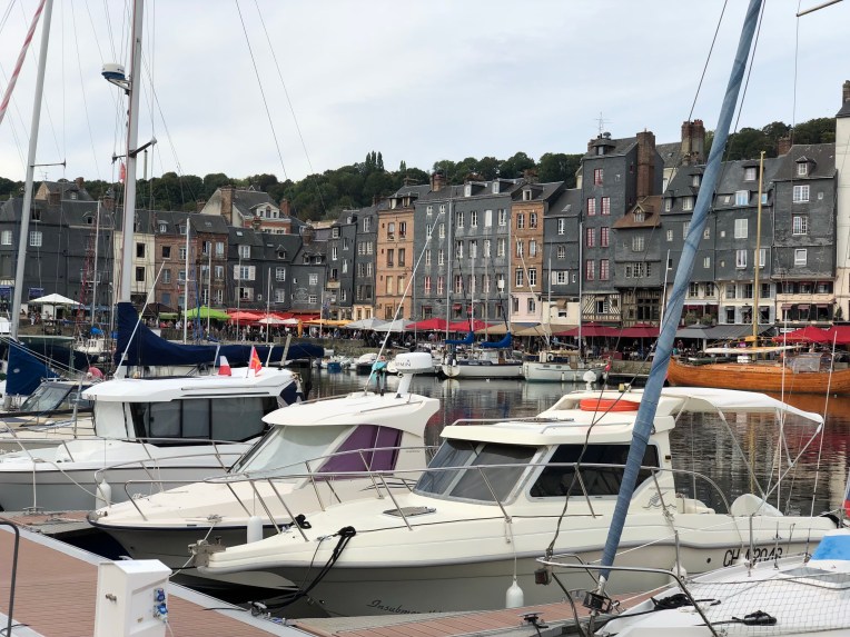 And now we’re in Honfleur, a very pretty big-ish French town with a port. Well to be precise… we are 40 minutes walk from Honfleur, under the motorway that bypasses Honfleur and beside a small French town called La Riviere-Saint-Sauveur. If that’s a mouthful for you, you’ll understand why I fell asleep when we got here. I think I was tired. By 8pm I was drinking tea, reading a book with my favourite quilt around me and I was ready to go back to bed.