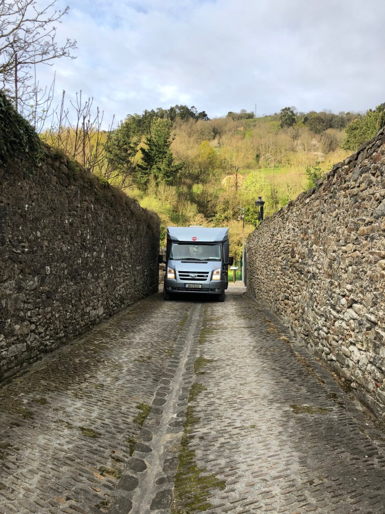Last night we stayed in the mountains, in a tiny village with tiny lanes leading to a lovely little parking spot. There was shower, dish washing sinks and a spotlessly clean toilet. It was free if you didn’t need electricity and we didn’t.