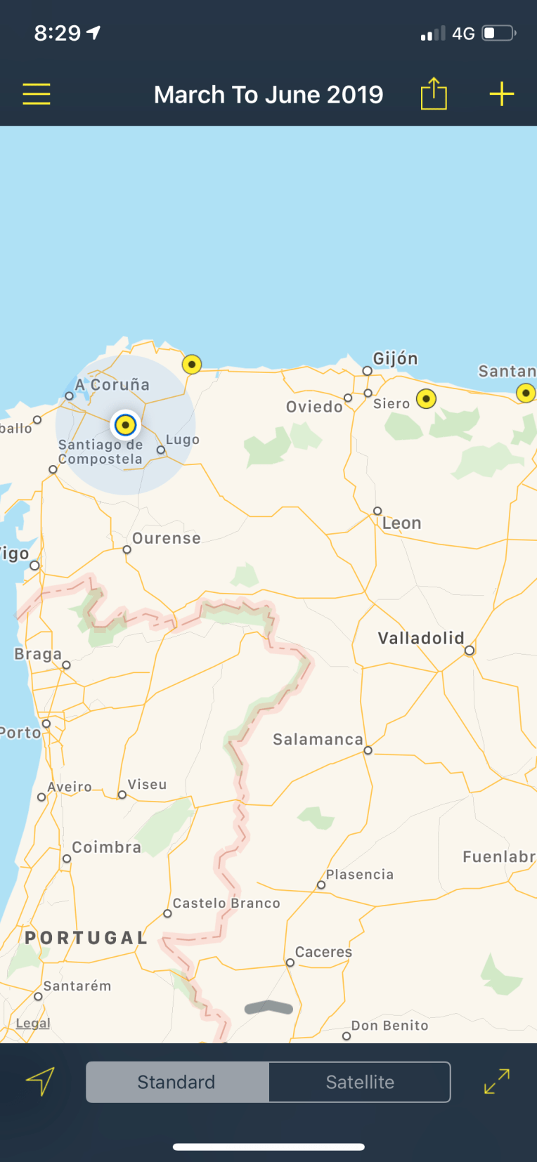 (There we are just north of Santiago de Compostela in a town called Guitiriz, free parking, free electricity and free toilets)