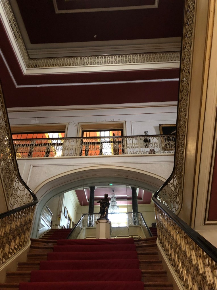 (I snuck over a barrier at the gentleman’s club to get you a picture of the stairs. Not a feminine touch in sight)