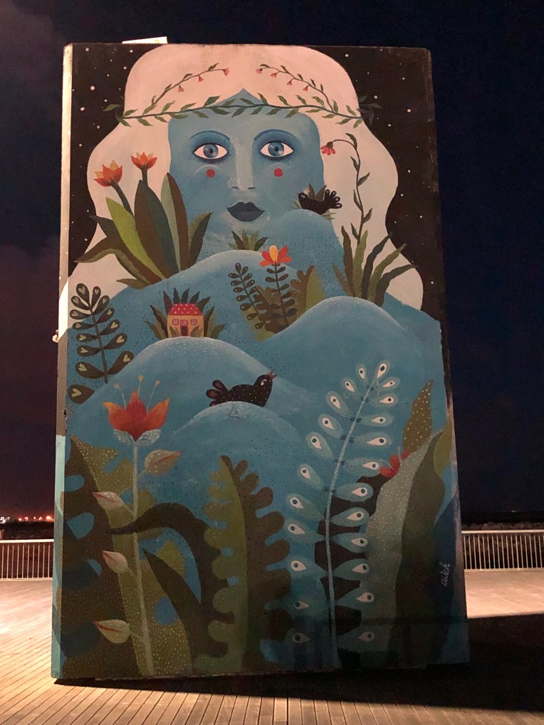 (Huge art piece on the boardwalk)