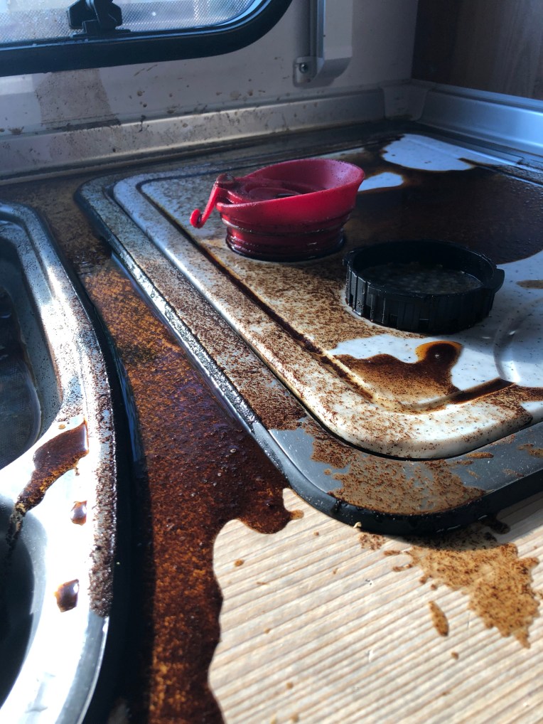 The following morning we left early but not before Denis spilled his coffee. Every morning Denis makes a travel mug of coffee and sips it throughout the day.