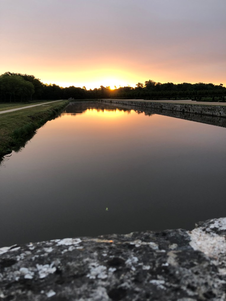 It was after five by the time we arrived so we had a quick cup of tea and some emergency long life Portuguese tuna patê on crackers and then off for a walk around the grounds. It was still sunny but not too hot and the French were doing what they do on a warm Saturday afternoon – walking in a royal garden. This garden is full of wildlife, birds swooped and frogs croaked and there were signs telling us about the wild boar. It seemed like our breakdown experience had reset something. The long drive hadn’t managed to tire us and we walked enough to hit our step goals.