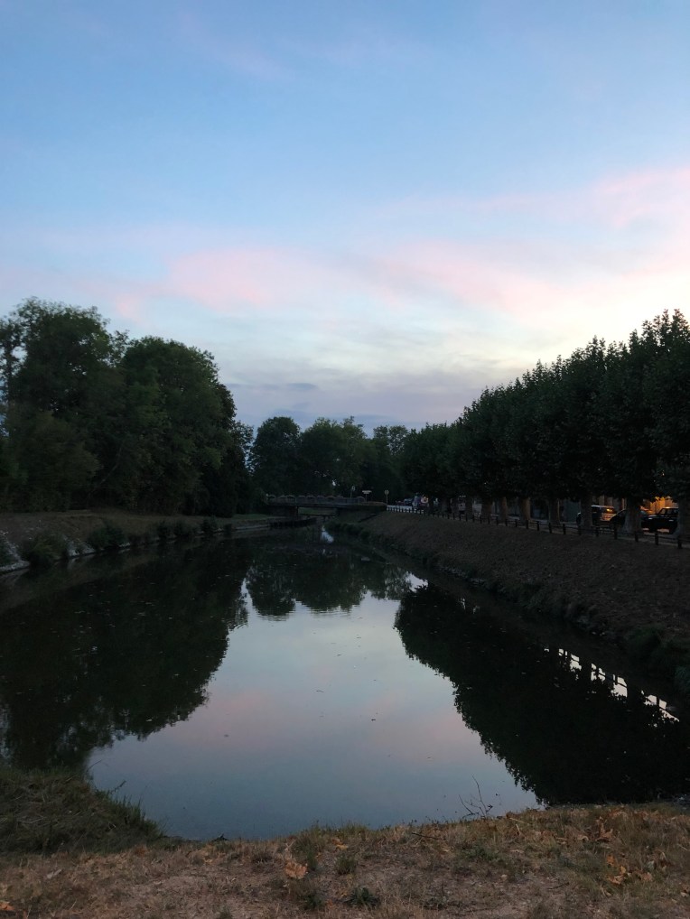 Vitry-au-Loges is a small but perfectly delicious town on the banks of the Canal d’Orleans. We arrived at about four in the afternoon and closed all the shutters to keep our little home cool. It did not work. I went out to the bench beside the canal to find somewhere cooler to write to you. It was not. Then I completely forgot to take any pictures. The heat makes me forget stuff. Sorry… there’s one in the darkness but it’s just not the same.