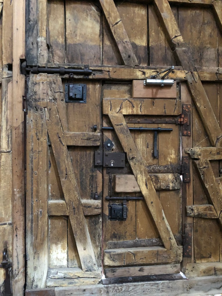 The surprise after that little door is the internal space is very impressive. It’s still in use on Sundays for mass but today there were groups of French tourists having a guided tour.