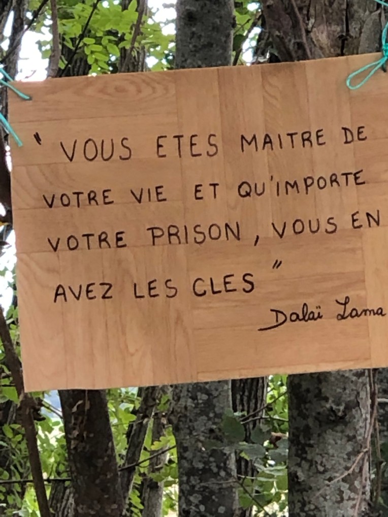 (Noticed this hanging on a tree on my way back. You are the master of your life and whatever the prison you have the keys. The Dalai Lama)