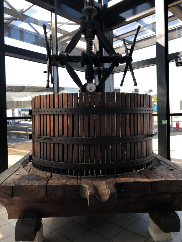 (This old wooden wine press was also in the foyer – wine production is big here too)