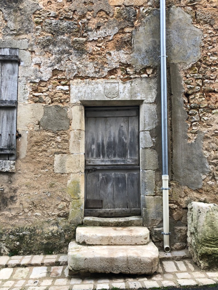 I love old doors in France, especially when they are framed by stone or wood or greenery. This town was mentioned in the old sign yesterday and now here we are rambling along its streets. It’s full of lovely doors…