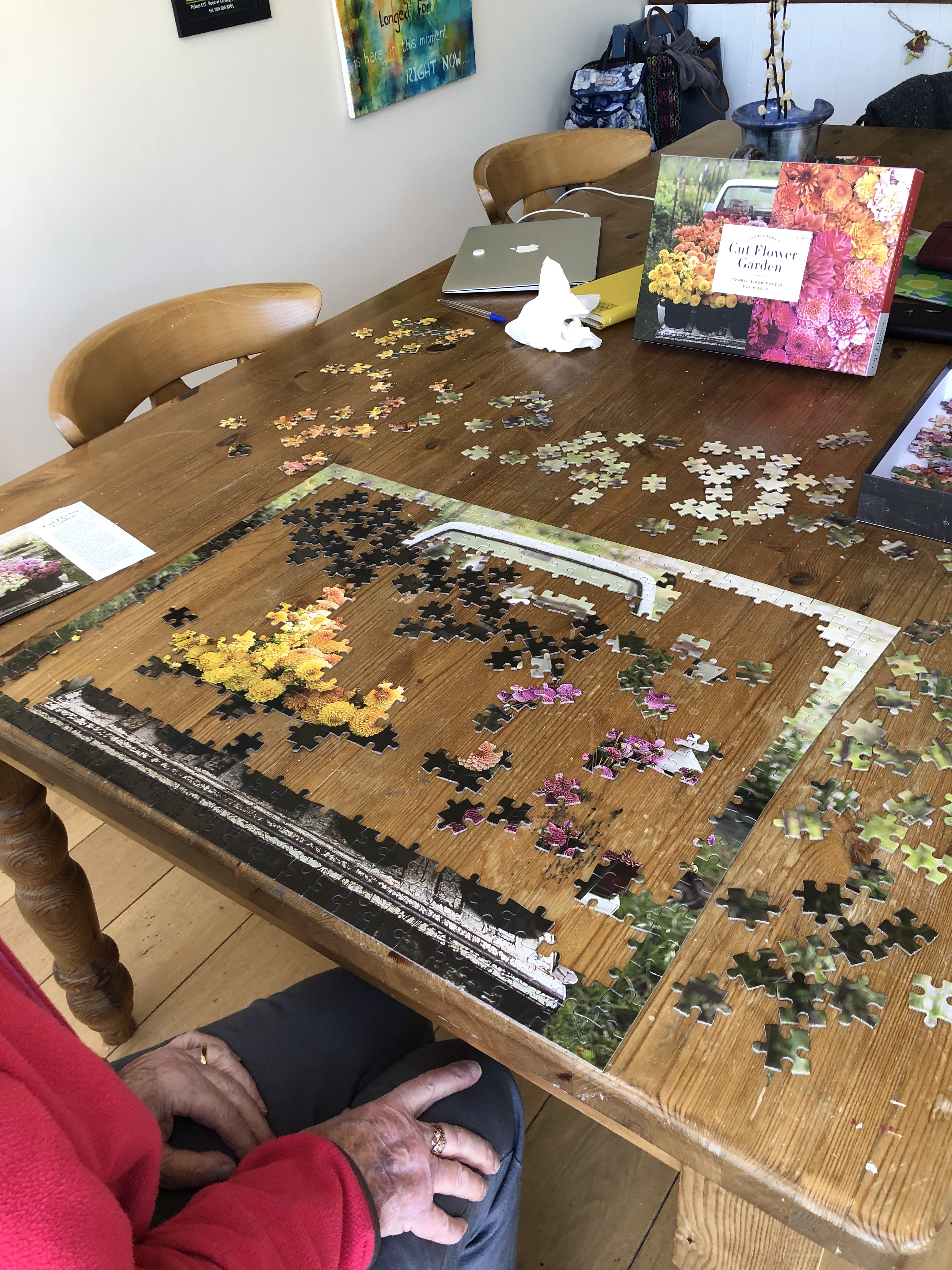 And therein hides a dilemma. Did I mention we got some jigsaws from the Cork art and craft shop that delivers? It’s called VibesandScribes.ie it’s well known in Cork so of course Eilish knew about it but when her daughter-in-law, Helen, suggested we might get some project supplies, Eilish and I did something we’d never done before.