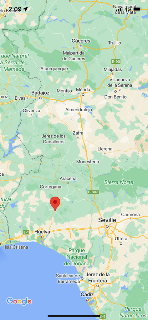 It’s Saturday, the rain has stopped but it is still quite a grey day. We travelled up into the hills of Andalusia this morning to a town called Valverde de Camino. It’s on the Camino de Santiago as the name hints. The park up is on the edge of town beside a little vegetable garden. The sun is coming out and the smells of soil and vegetation is just glorious. It is striking the difference between a city park up and a country park in terms of the senses.