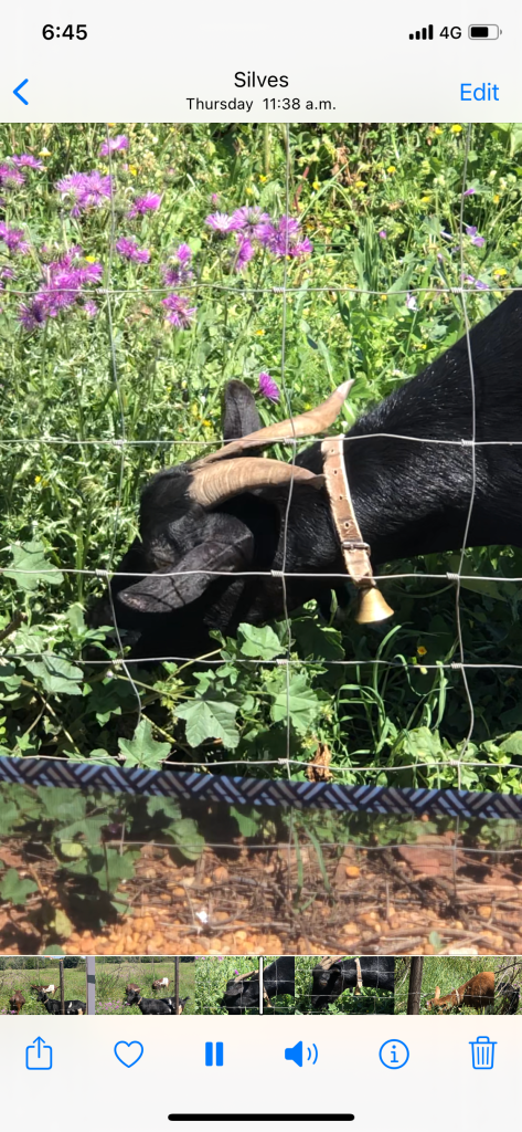 If I was a Goat Listener I’d take my cue from them. I want peace and calm in my life while also doing the things I’ve promised myself I would do. The peace and calm are right here with me wherever I am in every moment. The things I promised myself I would do are things I love doing, like writing and having a creative practice and connecting deeply with other humans. I can eat up the peace and calm that is here in abundance and ring the bells with what I love. Or I can listen to the fake thoughts. You know which one I want. Happy Life.
