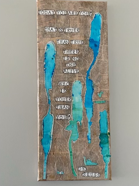 When she made them – could be 10 years ago now – she didn’t think much of them but I loved them and asked her if I could use them in a mixed media piece. She said yes. I was sure I’d be able to recreate more drips whenever I needed them. I thought it would be so easy. It’s just gravity, paint and some water after all… But I was never able to reproduce Megan’s drips.
