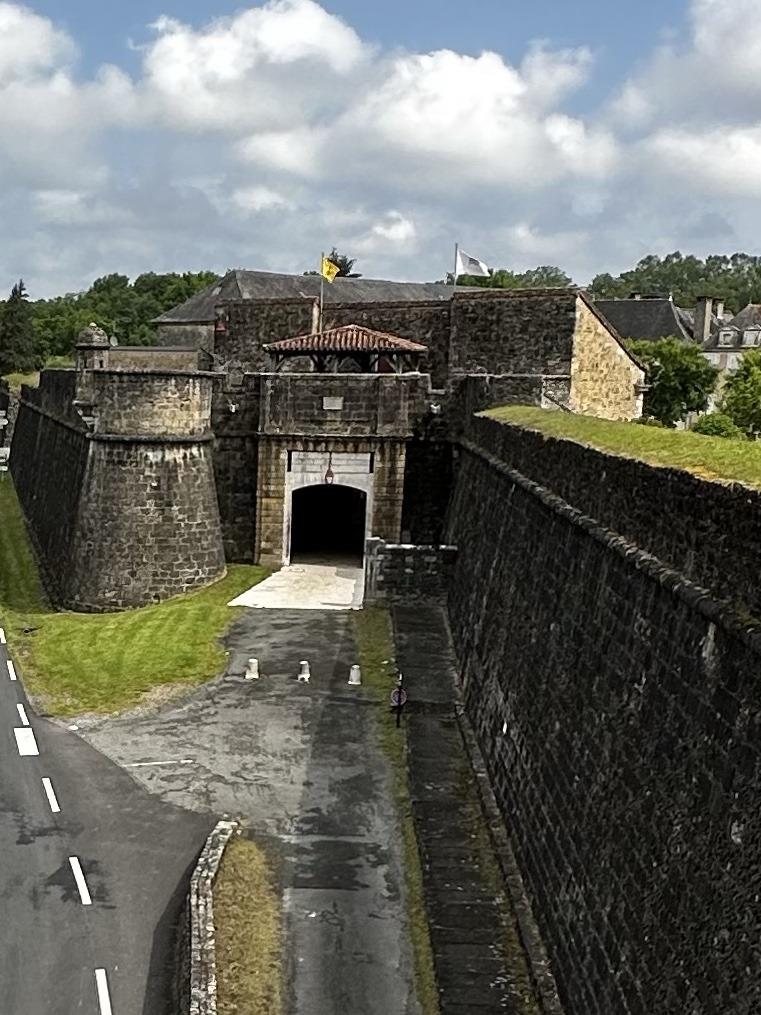 Starting with Navarrenx, do you remember I forgot to take a picture from the approach to the town? Turns out I had taken a picture from on top of the village wall and with a little editing, it works just fine. Also, do you remember the tunnel of lights under the wall in that same village? Well here’s the channel that lets that light in.