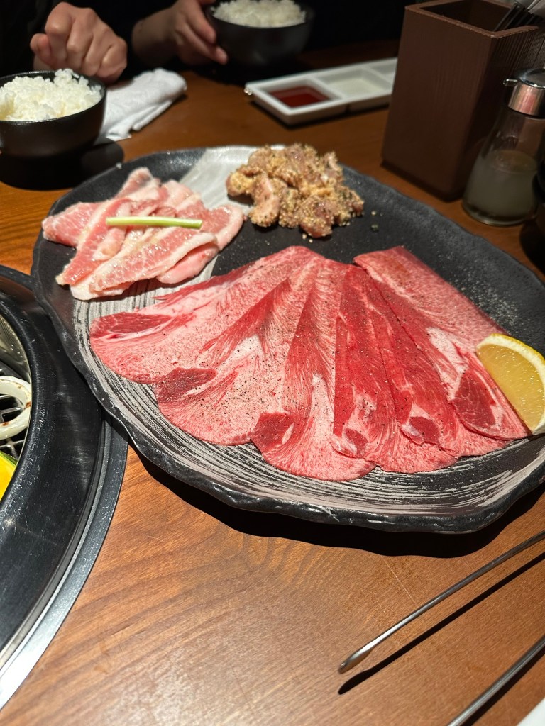 When we arrived at the restaurant we were welcomed by the staff and we each took off our shoes and put them in a cupboard just outside our private room door. There were a couple of pairs of flip flops nearby and I inquired if I needed to wear them but no they were to use if any of us wanted to go to the bathroom. Then the ordering began. Shiori’s sister ordered using her phone and soon there were drinks and platters of vegetables and meats and bowls of rice arriving on the table.