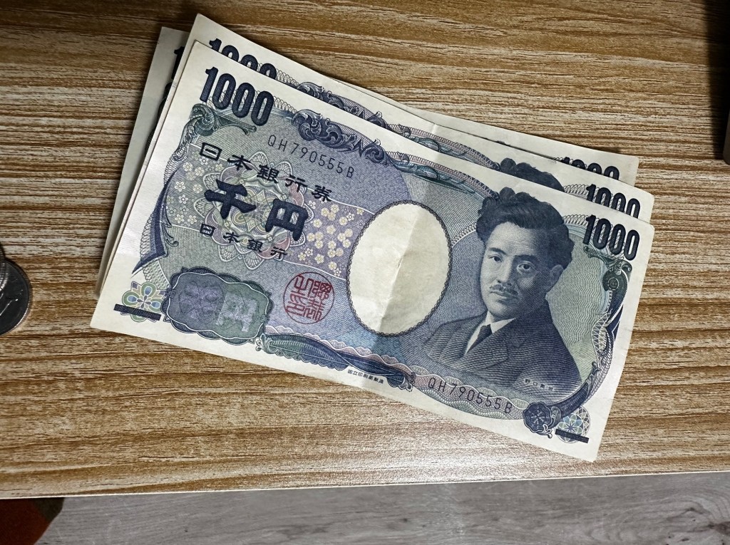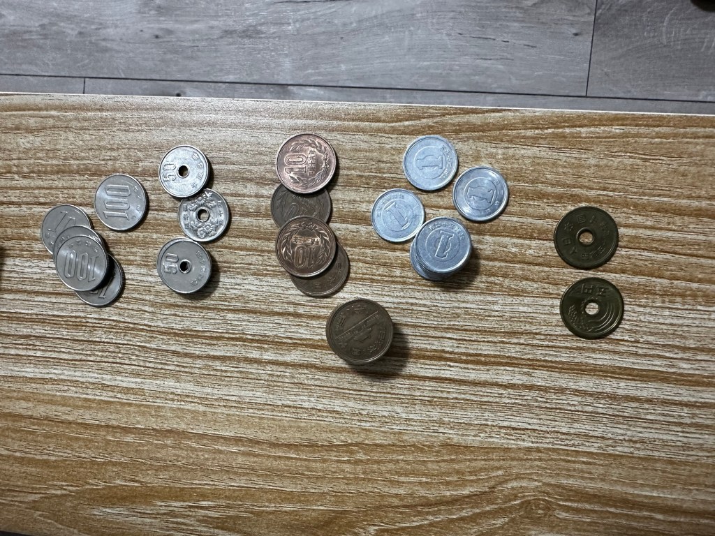 The notes we’ve seen most of are the 1,000 ¥ (Yen) and then there’s coins for 500¥ and 100¥ and smaller. When working out what something costs in € (euro) I have a quick calculation. If it’s something Denis wants I knock off the last two zeros and divide the rest by three and double the result. So for example, if something was 3,500¥, take off the last two zeros, it becomes 35, divide by 3, it becomes 11.66, double it, it becomes €23.32. On the other hand if it’s something I want I keep it simple. First, take off the last two zeros, it becomes 35 and the divide that in half, it becomes €17.50. My method means Denis has been spending far more than me so I’m in credit and can get more things… like stationery.