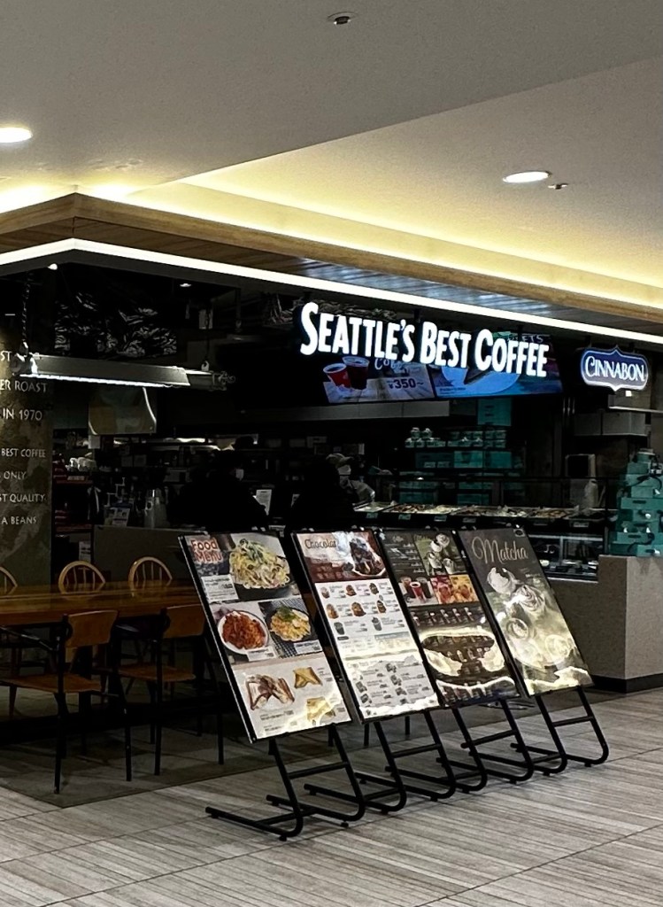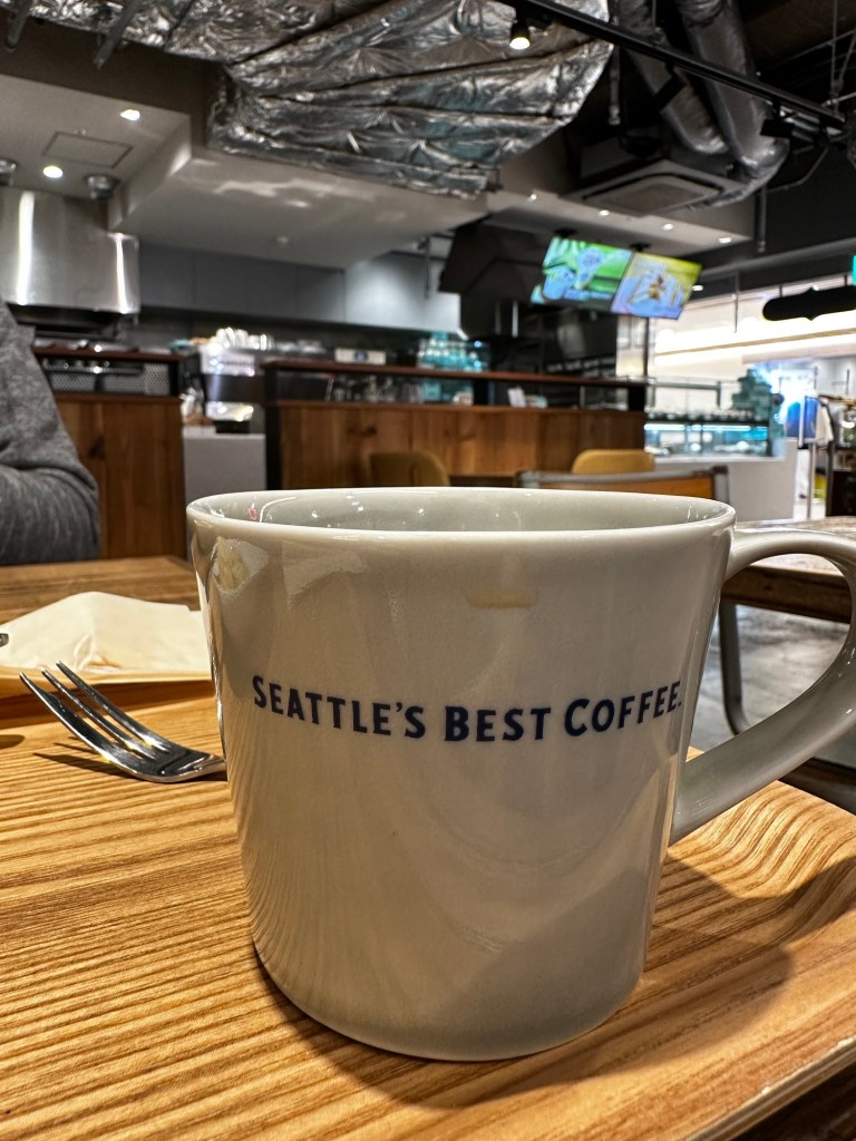 Right now I’m sitting in a cafe called Seattle’s Best Coffee… probably not original Japanese then? We chose it because they also sell Cinnabon buns… I thought that was a make up thing? Before we left for Japan we had been watching Better Call Saul, a Netflix series and really good spinoff of Breaking Bad. At one low point in the main character, Saul’s life he was working in a bun shop called Cinnabon. I didn’t know it was a real thing. It is and it’s here in Osaka! And they have scones. And they call them scones! When we travel to Portugal the one thing I miss is scones, you can’t get them in Spain or France either… but you can get them in Japan!