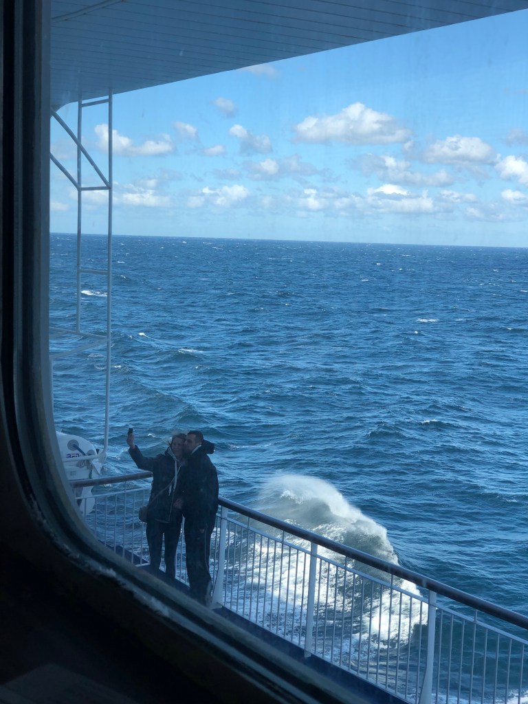 I am sitting on the bed in our cabin on deck 9, the sea is incredible calm. There are no windows but from the slight movements, rattles and shakes in here I sense the calm sea. It was definitely calm when we were eating breakfast. Every time we travel on the ferry we remind ourselves that there’s no need to eat breakfast and then each time we see the beautiful photography for the breakfast we forget. The actual food does not look like the pictures and it does not taste the way the pictures make me think it will taste. I have been wondering about this for years. I think I’ve eaten my last breakfast on the ferry… maybe.
