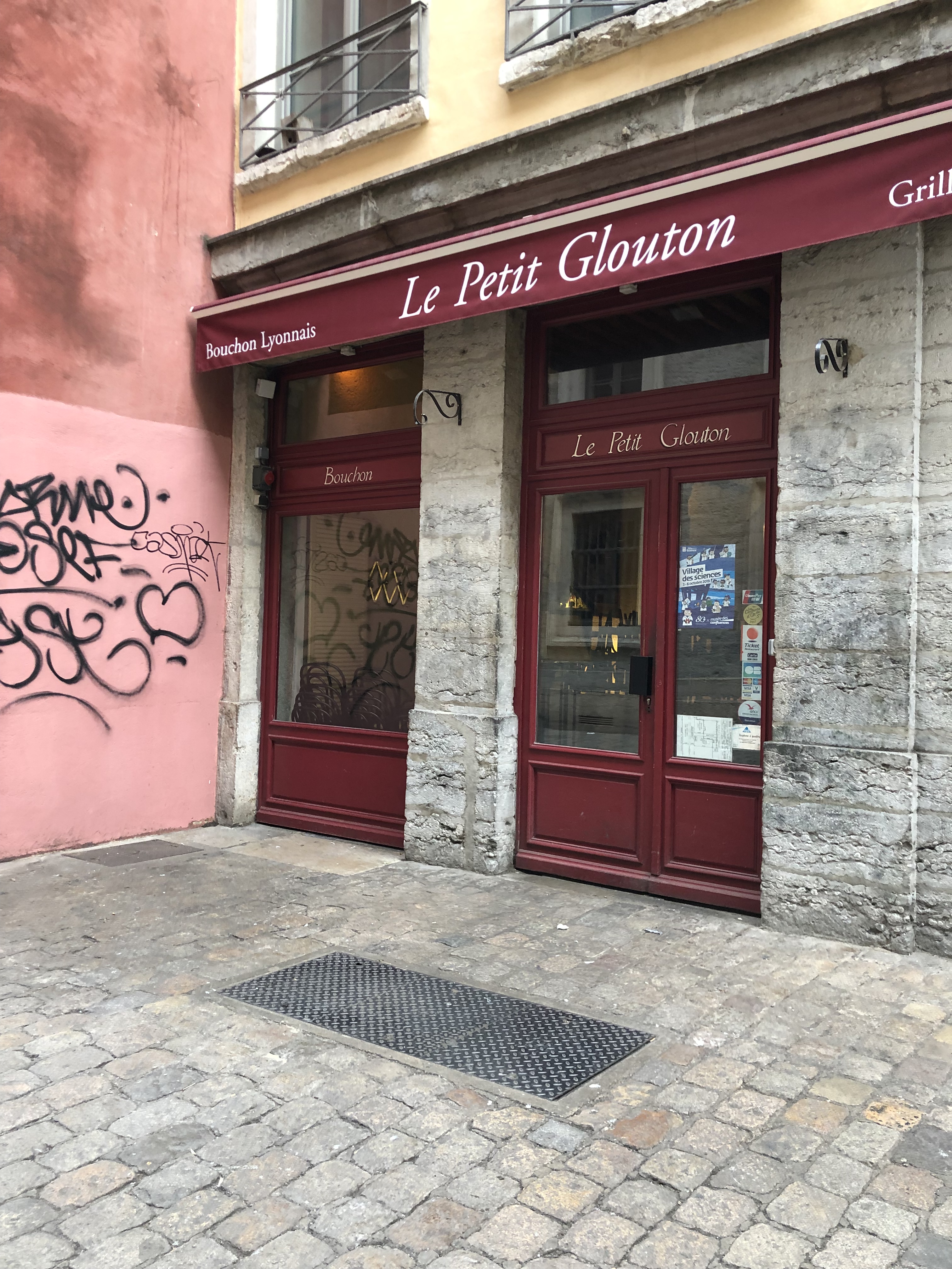 (Less familiar, a bouchon restaurant, traditional Lyon)
