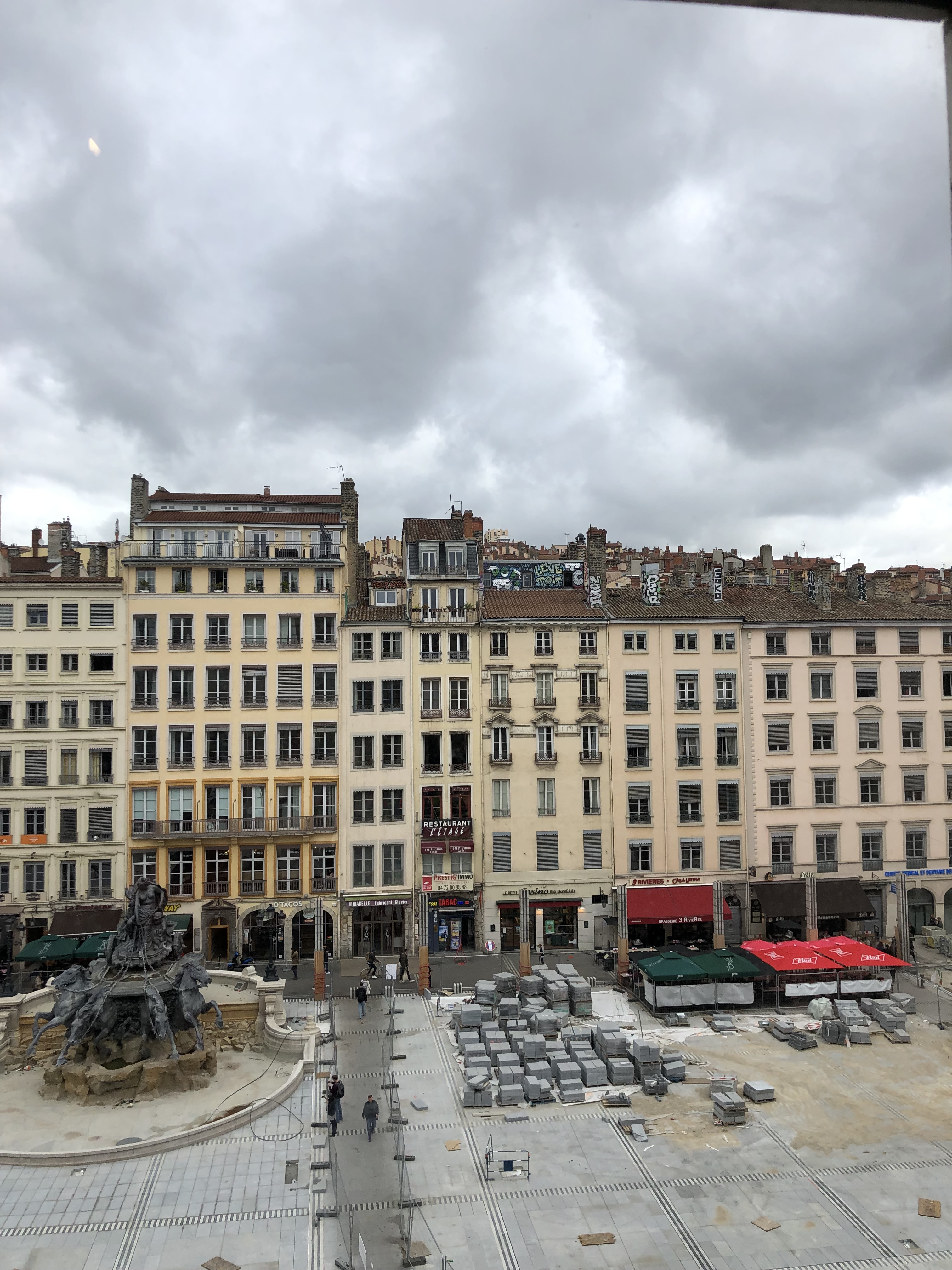 (Place de Terreaux getting its facelift. Also can you see the graffiti? On the chimneys? Artists without fear)