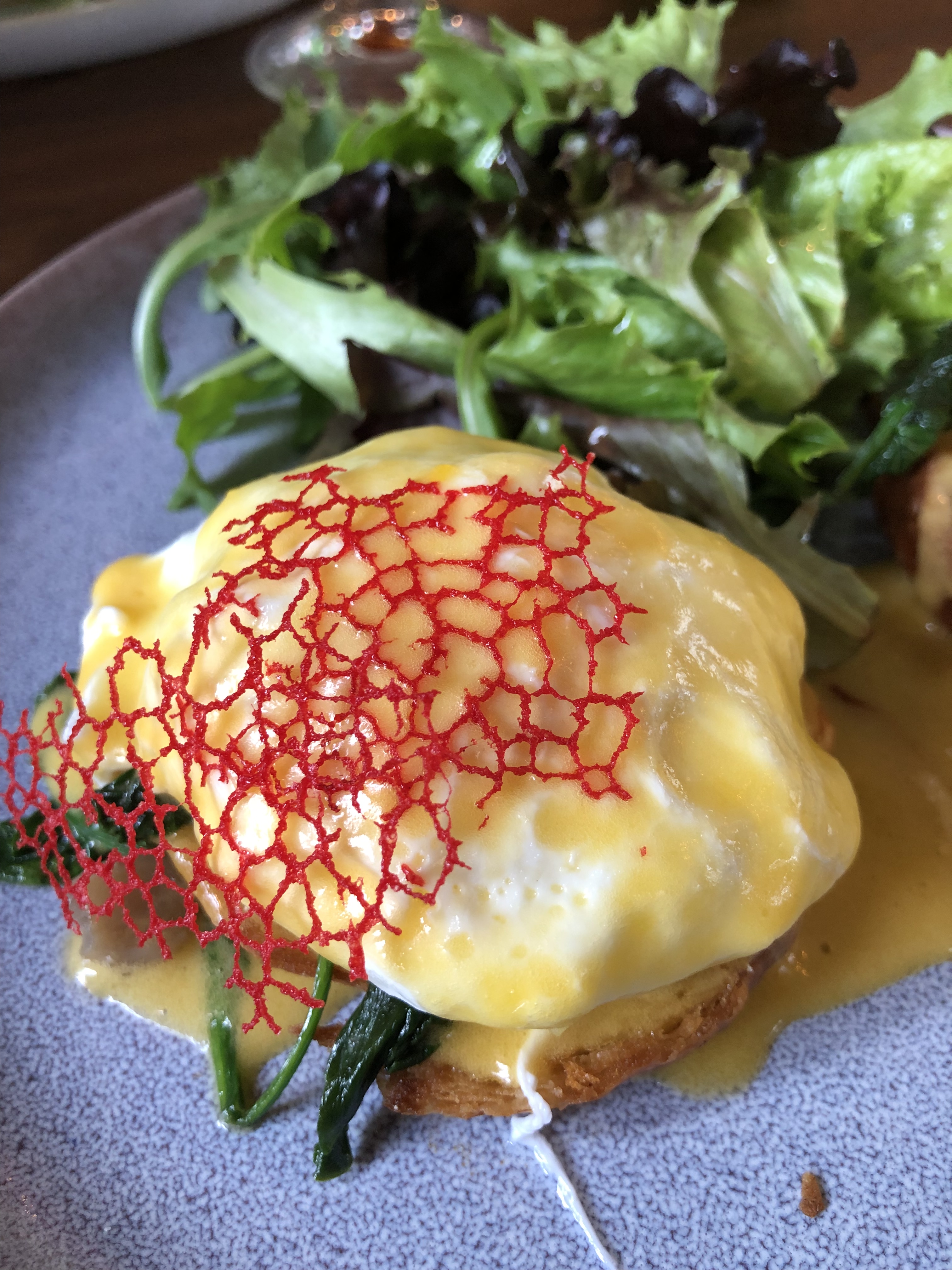 (Lunch at A cafe called the Garden in Porto. Florentine eggs)