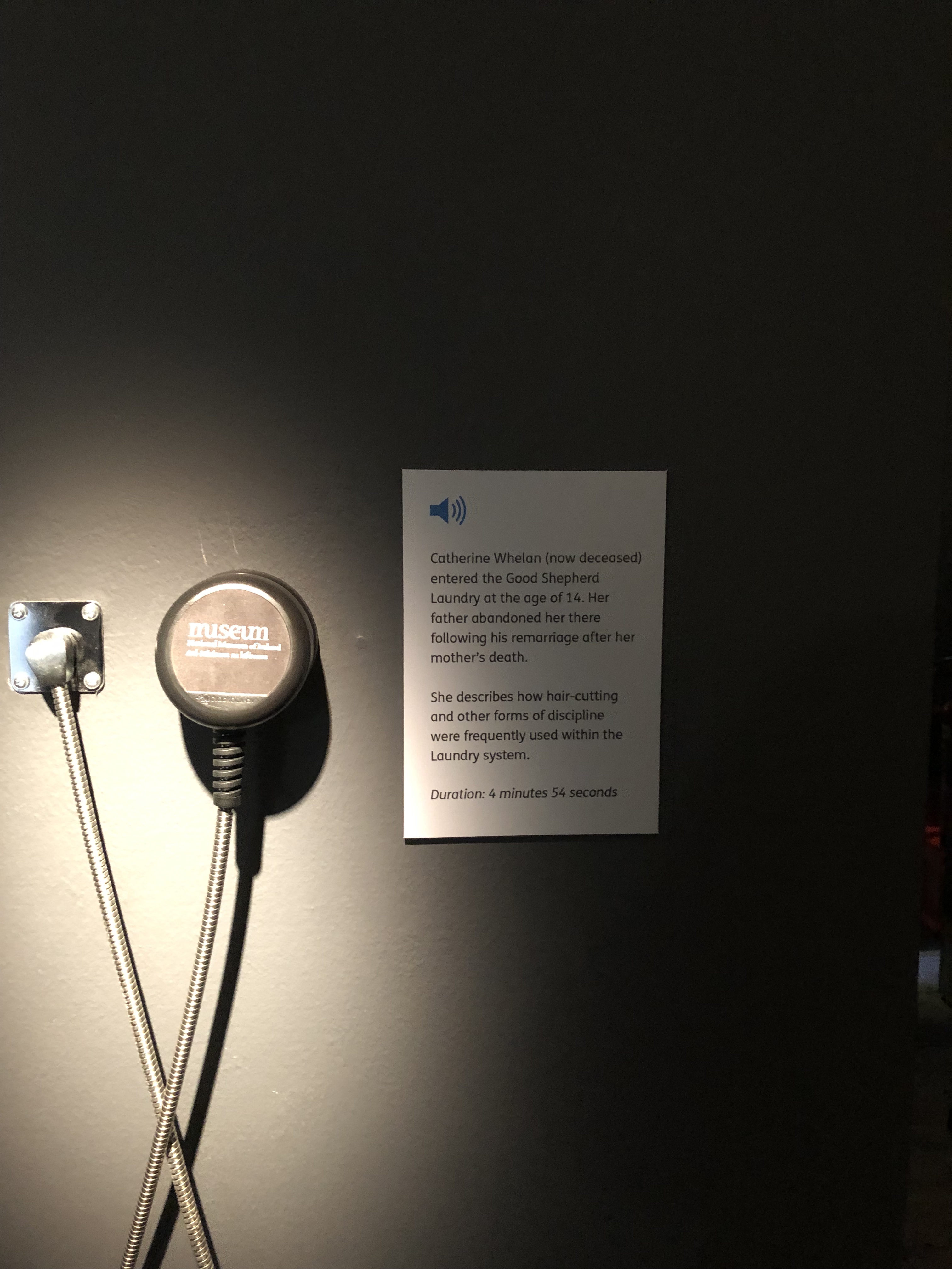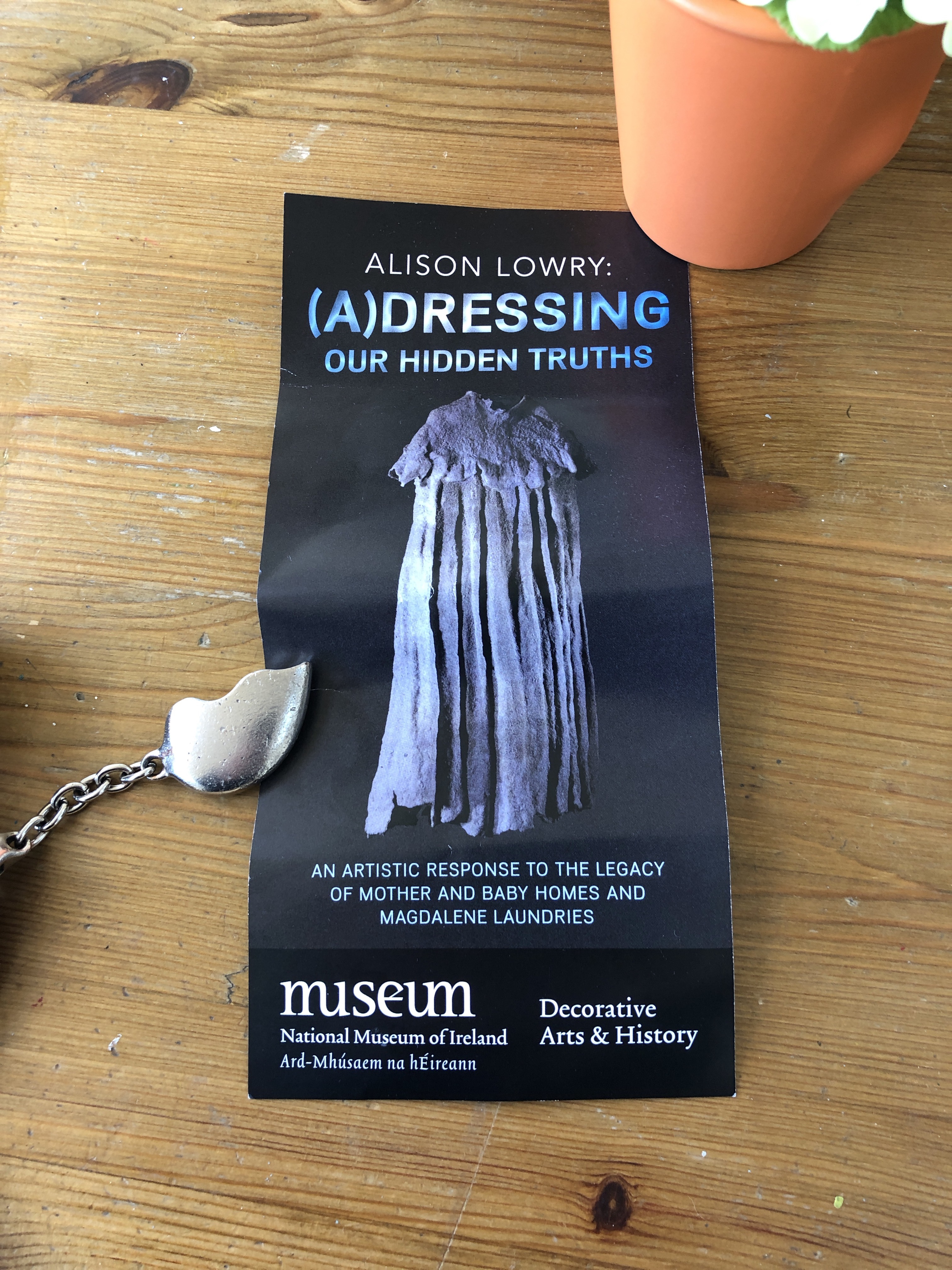 (A list of the Industrial schools in Ireland. I saw on this list that there was one in my home town. The scissors is made by the artist with glass)