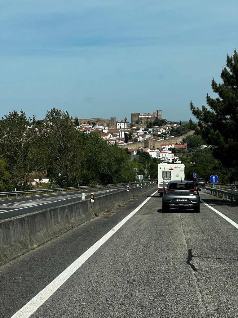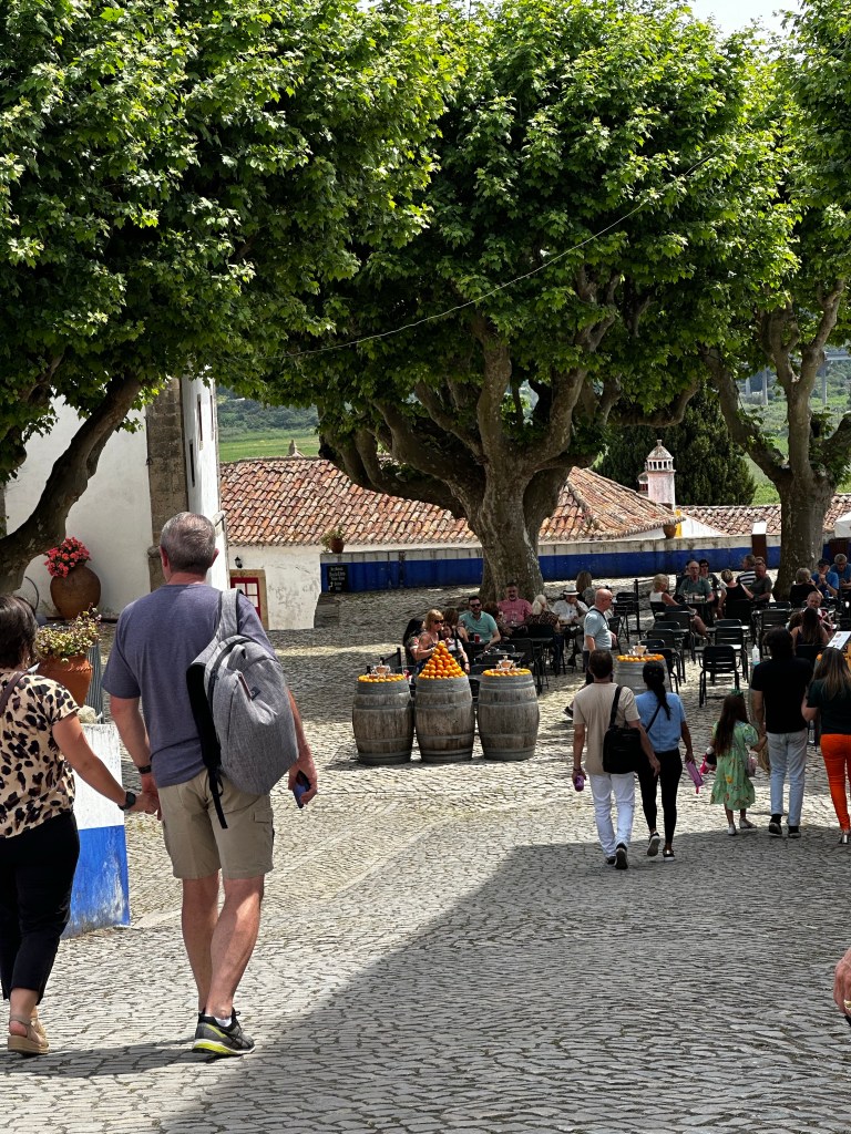 And Ferrel has surfboards for rent. As you can imagine we were very tempted but we drove on to Óbidos and wow! This is an intact medieval town, a bit like Carcassonne but less commercial. Gorgeous narrow streets and a huge wall running around the outside. Lots of souvenir shops, cafes and restaurants. And bonus, free parking for motorhomes.