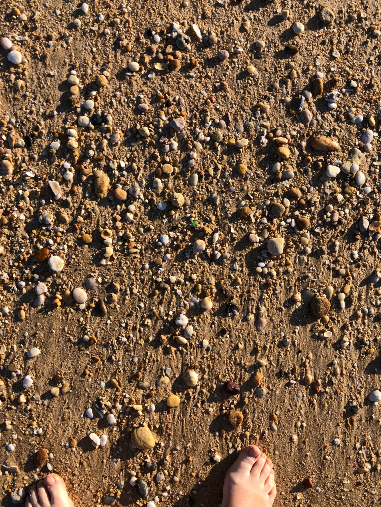 There are also little pieces of sea glass on this beach. They are harder to spot in the beginning but soon they are very hard to miss. It’s like anything you are interested in. If you like a particular make of car you will see it wherever you go. We notice every motorhome or camper van on the road. I see storks and now I notice sea glass.
