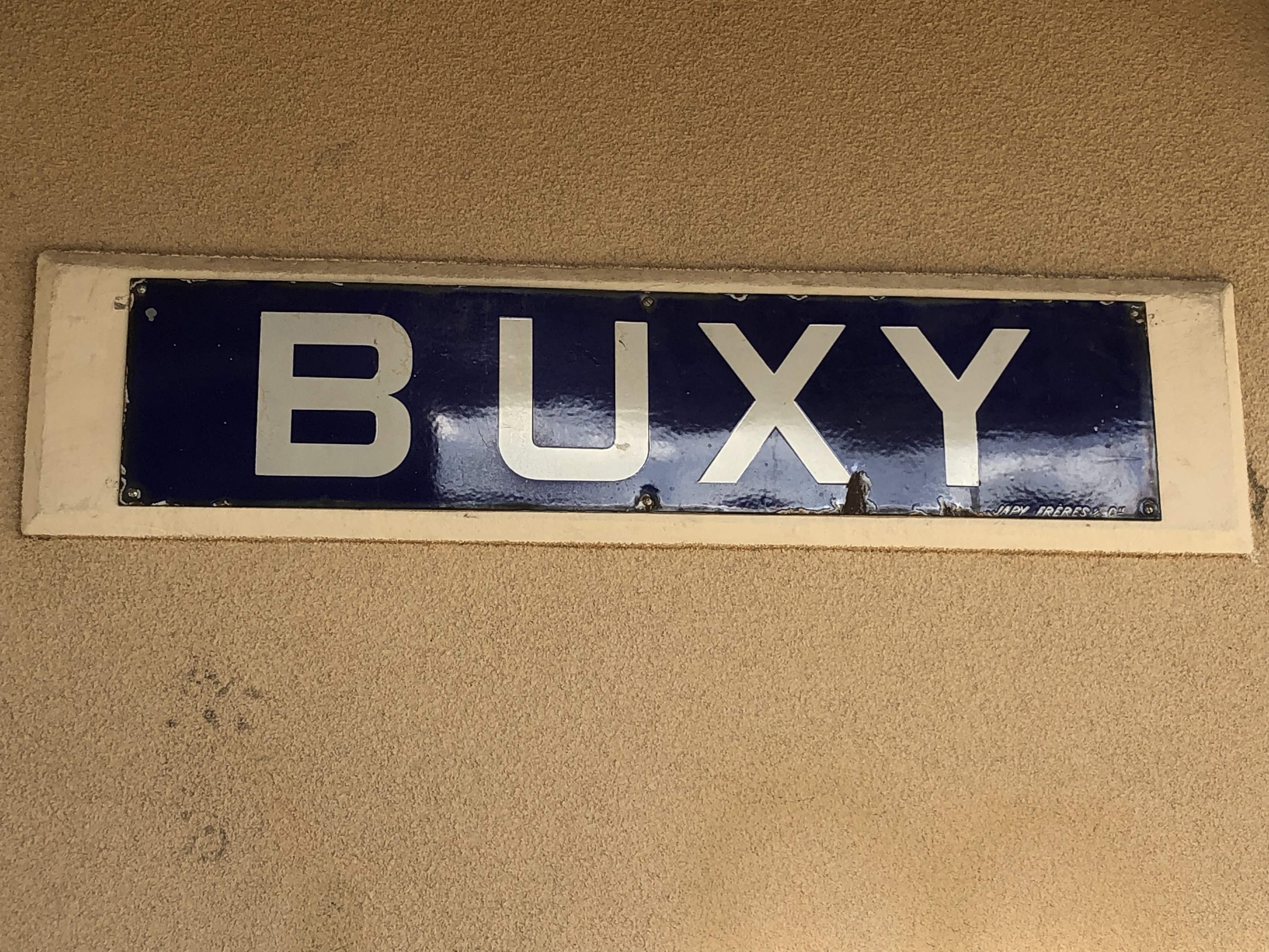 (An old tin sign on the former train station wall)